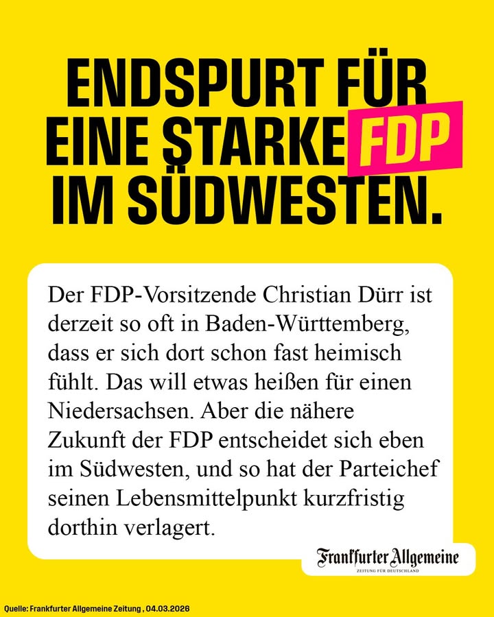 Die FAZ berichtet heute über unseren Wahlkampfendspurt! 💪 Am 8. März FDP wählen! 💛
